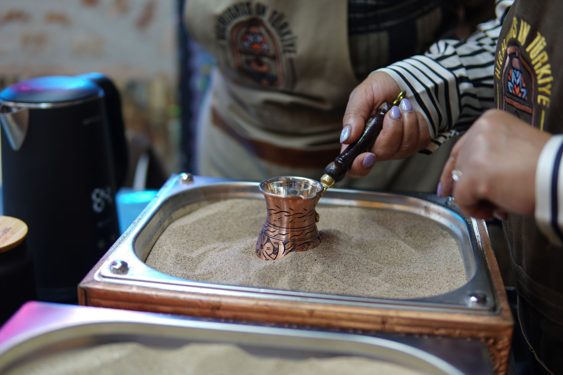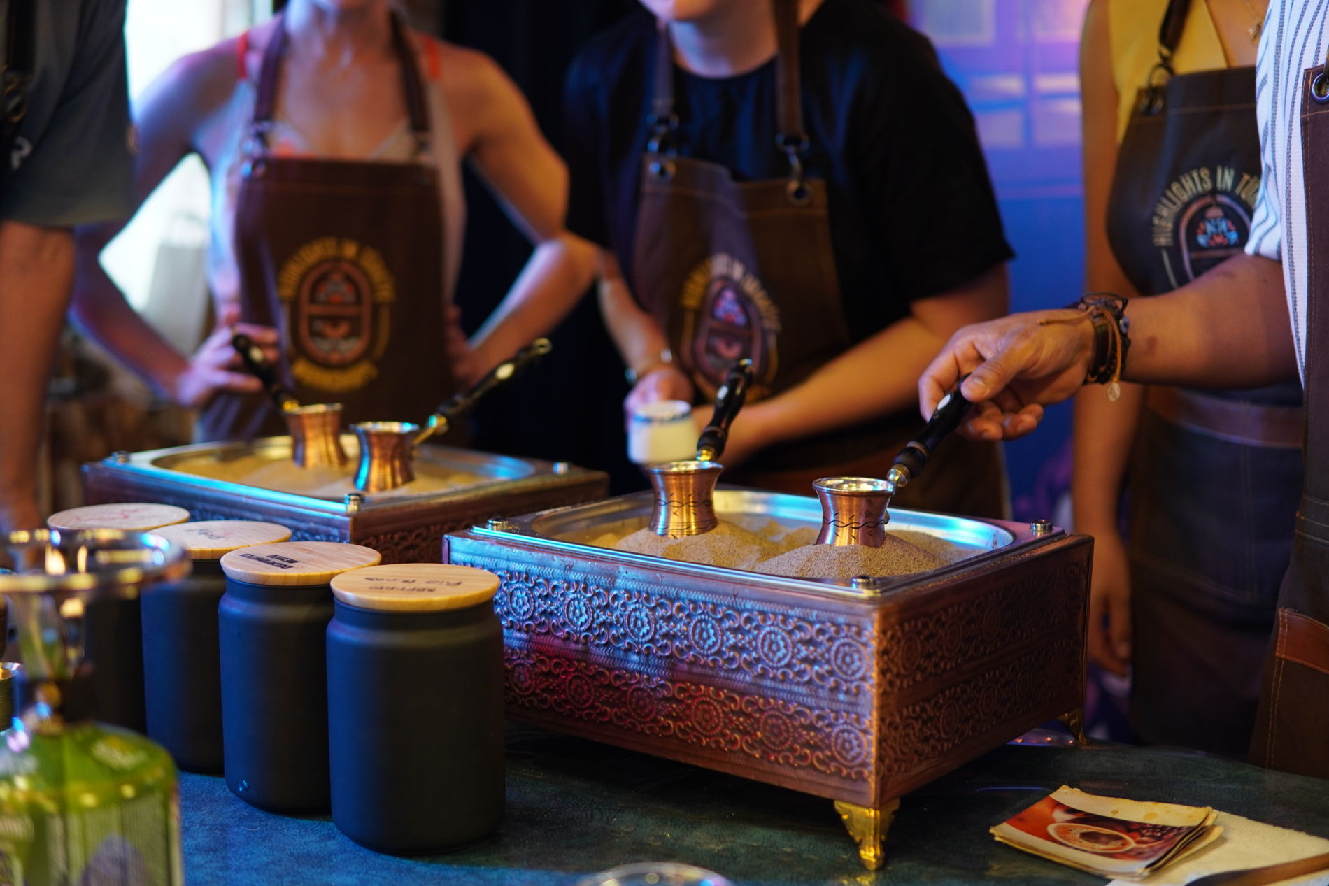 • Продегустируете ароматный напиток вместе со сладостями и специями. Наш мастер расскажет, как приготовить кофе на песке в домашних условиях, и поделится своими секретами.
