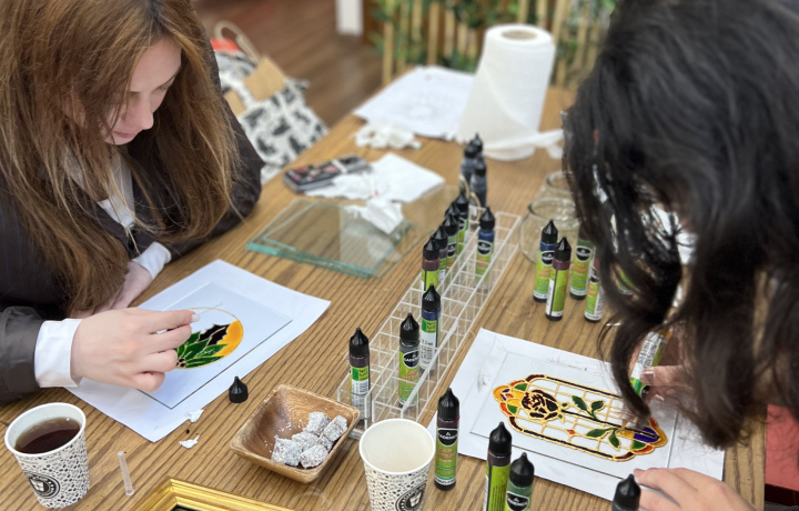 Приглашаем вас в нашу уютную художественную студию в самом центре города. Наш мастер познакомит вас с историей и техникой росписи витражного стекла. Вы сможете выбрать готовый эскиз или свой дизайн рисунка. Ваш опыт рисования неважен, ведь наш мастер будет помогать вам на каждом этапе. Готовое изделие на подставке вы заберете с собой. Создайте свой необычный и сувенир на память о прекрасном восточном путешествии!