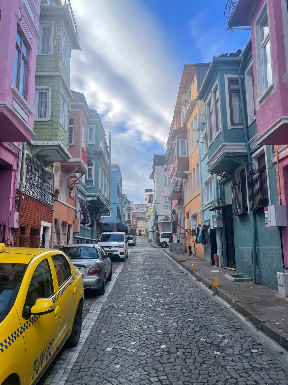 Вы пройдёте по узким улочкам с разноцветными домами, уличными кафе и развешанным бельём над головой. Это сердце Балата — не музей, а повседневная жизнь.
