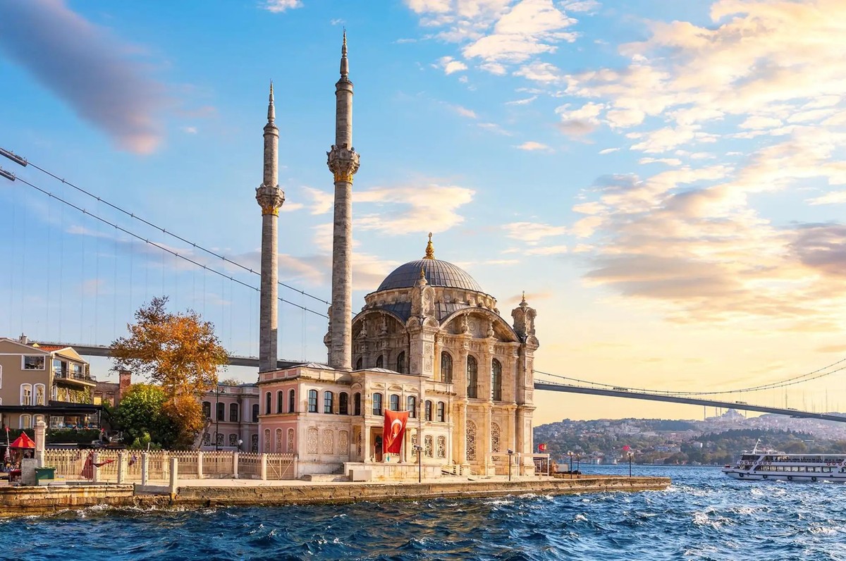 Первая остановка — одна из самых изящных мечетей города, стоящая прямо у воды. Здесь будет фото-стоп, посещение и рассказ гида. Архитектура в стиле османского барокко и вид на Босфорский мост задают тон всему путешествию.
