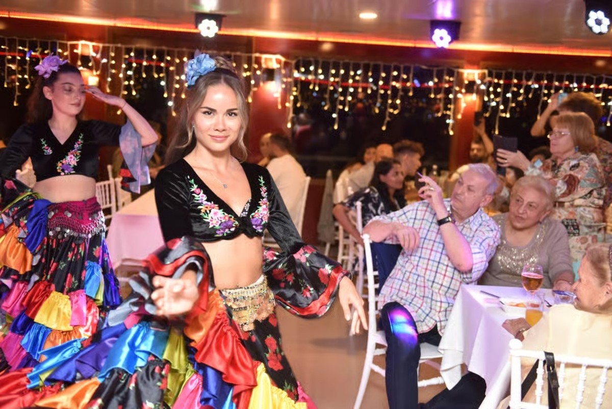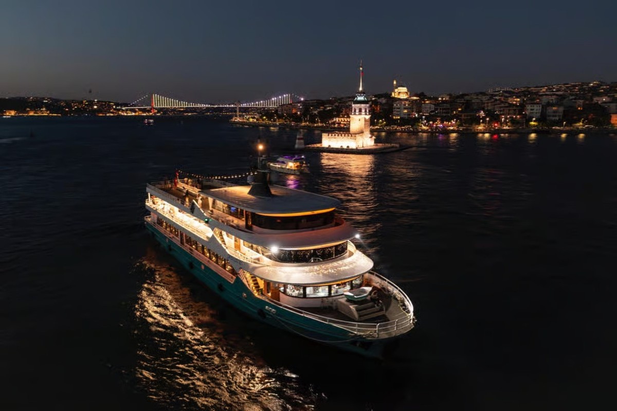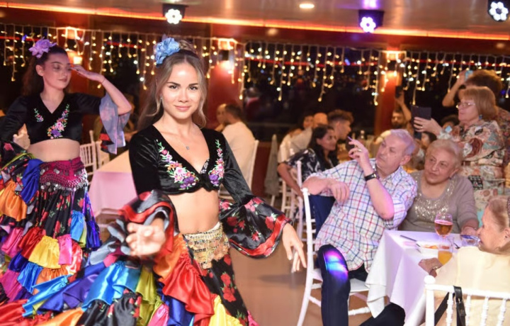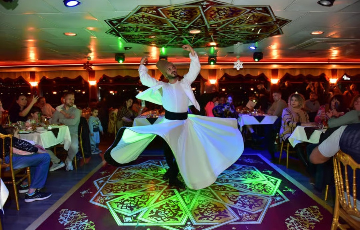 Отправьтесь в романтический круиз на теплоходе с панорамами двух континентов! Вы увидите освещённые дворцы, старинные мечети, Галатскую башню и исторические улочки города. А в финале пройдёте под Босфорским мостом и загадаете желание. На борту для вас — музыка, танцы и ужин, который уже включён в стоимость.