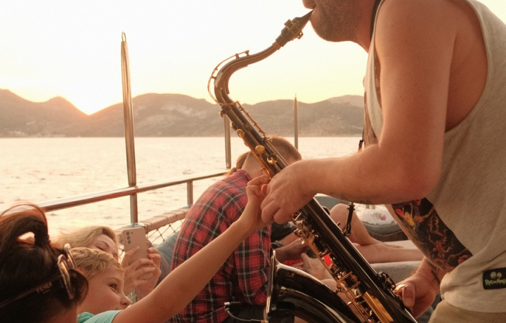 Солнце медленно тонет в море. Саксофон играет на палубе просто и честно: поёт вам без слов. Джаз всегда разный, как погода, но в декорациях Средиземного моря и Каша он неизменно прекрасен. Под музыку можно купаться, смотреть на закат, танцевать или слушать — без пояснений, без экскурсий. Просто быть.