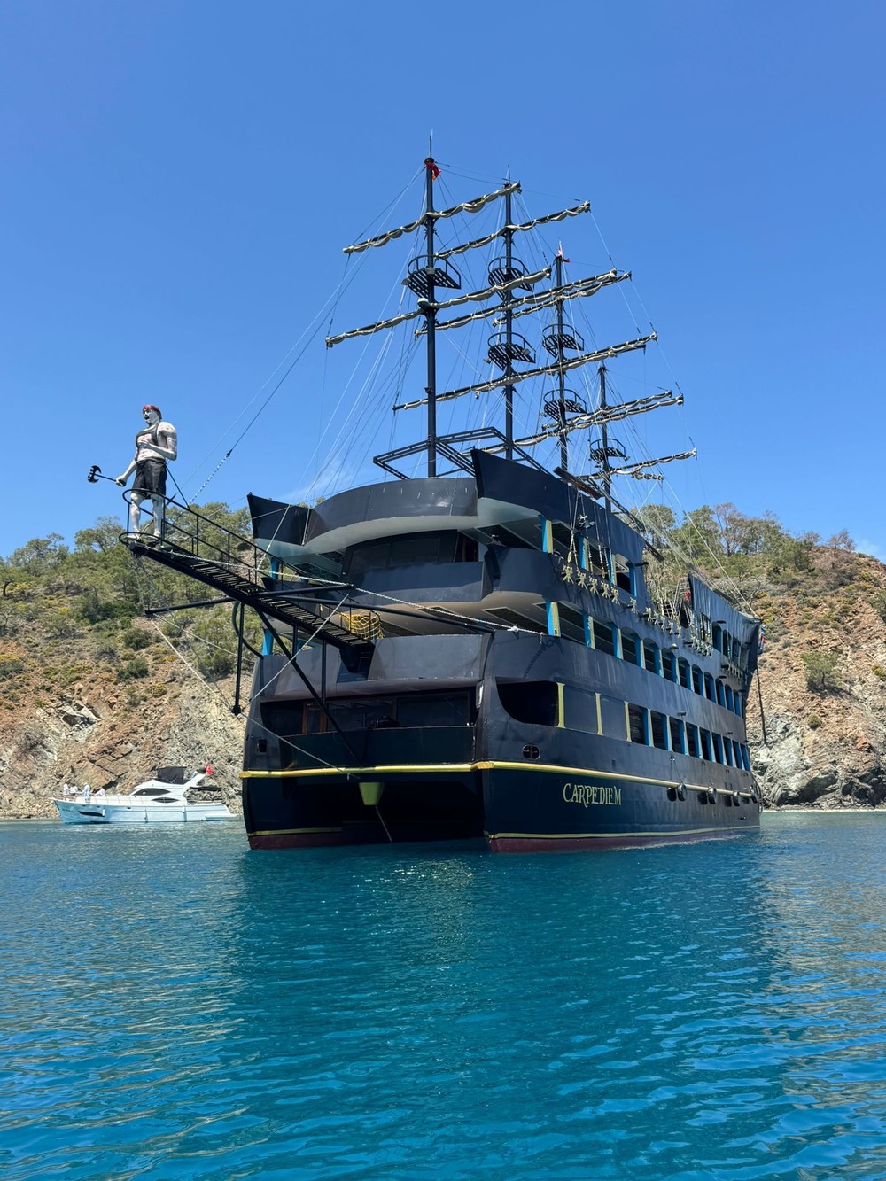 Приглашаем вас в морское путешествие на пиратской яхте — корабль стилизован под фрегат. День будет наполнен купанием в прозрачных бухтах, отдыхом на палубе и весёлой атмосферой. Вы увидите живописные уголки побережья Кемера, куда невозможно добраться по суше, и проведёте время с музыкой, развлечениями и обедом на борту.
