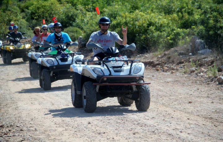 Предлагаем вам исследовать окрестности Кемера на квадроциклах. Команда инструкторов подготовит вас к приключению — и мы отправимся через сосновые леса и холмы, пыльные дороги и мелкие ручьи. Покажем уголки, которые недоступны во время обычных экскурсий. В пути делаем остановки, чтобы отдохнуть и насладиться видами гор.