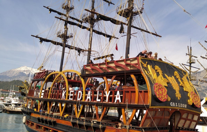Прогулка на корабле понравилась, типичный пиратский-турецкий корабль) Три остановки на купание, после первой был простой обед, после второй пенная вечеринка. Виды красивые, персонал дружелюбный