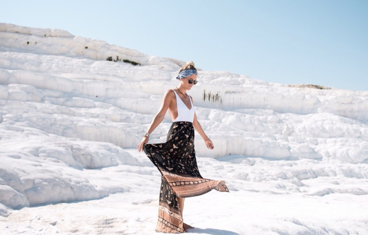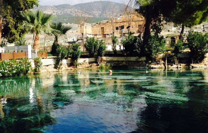 В Памуккале вид белоснежных террас с бирюзовой водой восхитительный. Это стоит увидеть собственными глазами! Вода богата карбонатом кальция, который и образует гигантские травертины - эдакий каскад из террас. Это место просто сказочное, а потому и название у него сказочное: Памуккале переводится как "Хлопковый замок". Вода в террасах теплая и расслабляющая, обладает целебными свойствами.