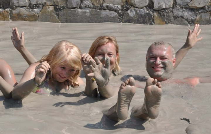 Сначала вас привозят в так называемые "грязевые источники с душем шарко". Мы не стали мазаться этой жижей. Под ногами слизь. Ни гидов , ни местных там не было. Тут же, после грязи, вы идёте на обед, где у всех одинаковое блюдо(рис и котлеты). Все напитки платные везде! Вода 50лир 0.5л, спрайт/фанта 100лир и т д. Имейте это ввиду, особенно, если едете на любые экскурсии с детьми.