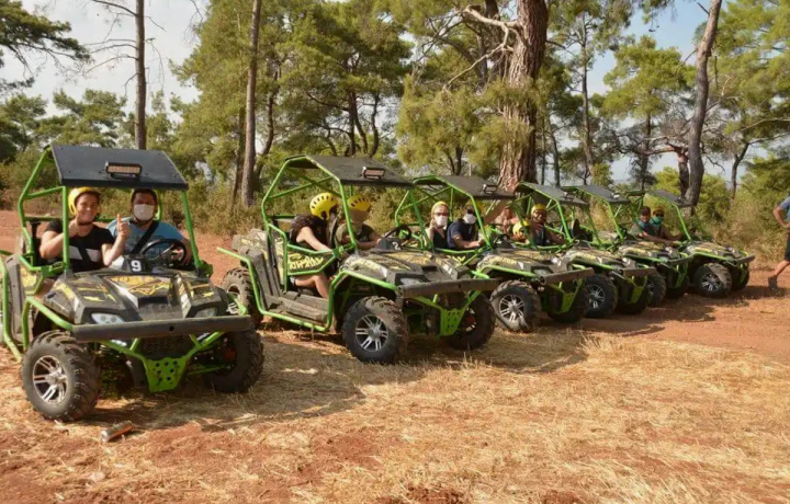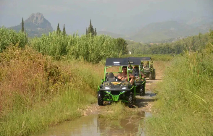 Вначале немного растроились, планировали на каньоны, но группа не набралась. Предложили другую экскурсию — рафт, багги, зиплайн. Классный рафтинг, эмоции на год вперед, багги тоже хороши, только нужно отставать немного от впереди едущего туриста, и тогда получается погонять и не надышаться пылью. Накормили вкусно. Дорога от Сиде заняла чуть больше часа на микроавтобусе, затем пересели в открытый автобус, далее рафт, багги, зиплайн, рафт, перекус, домой.