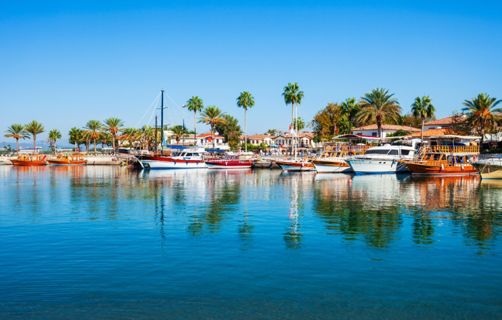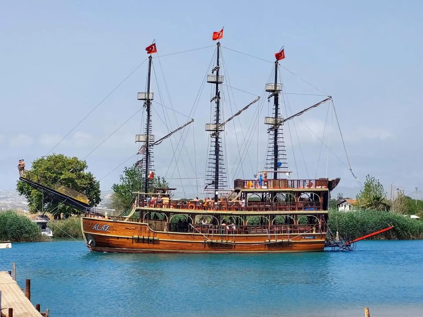 Посадка на яхту проходит у реки Манавгат, рядом с отелем Bosphorus Sorgun Hotel.