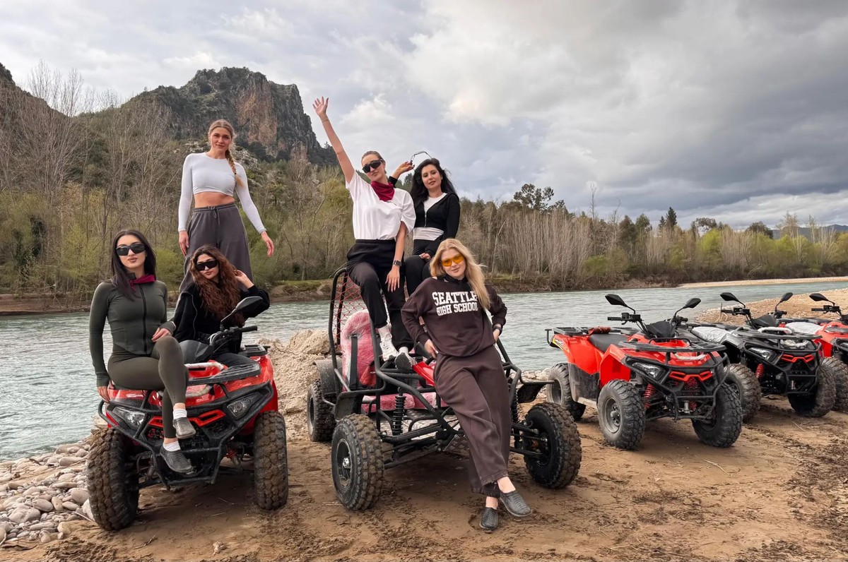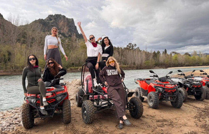 Сафари на квадроциклах. Маршрут проходит вдоль реки Кёпрючай по пересечённой местности с пыльными дорогами, грязевыми участками и водными преградами.