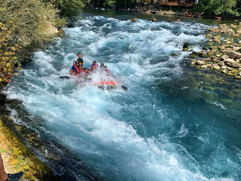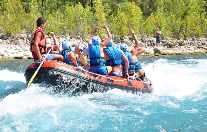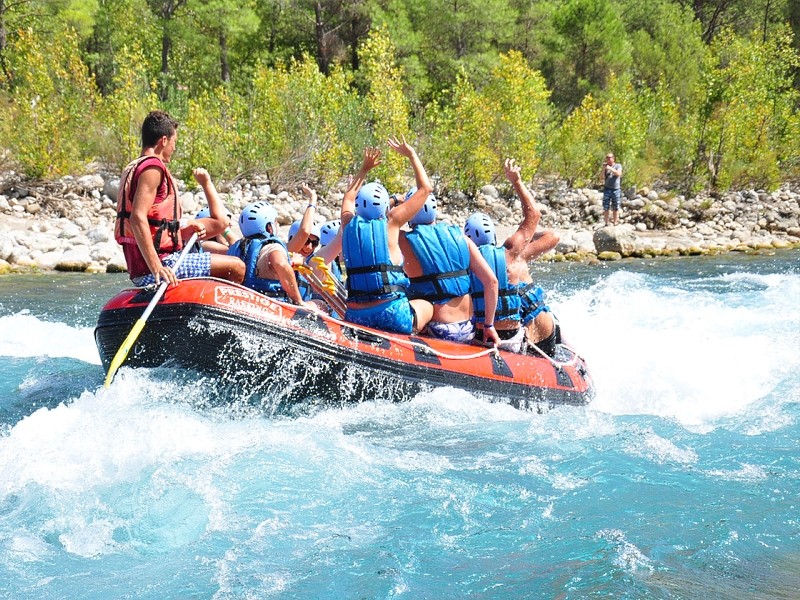 Ездили на экскурсию на рафтинг и каньоны. Что в первую очередь хочется сказать, по названию можно понять, что сначала нас везут на каньон, а потом рафтинг! Но, сначала нас отвезли на рафтинг. Там было немного плохо организовано разделение по группам и рафтам. Было много людей и русскоговорящих и иностранцев. Гиды долго пытались организоваться, но в итоге разделили всех. Вызывают по названию отеля…) Далее всё было хорошо. Проинструктировали, дали снаряжение и повезли на автобусе к месту начала сплава. Далее нас везде водили везде для типичных фоток, которые они потом продают по 5 евро ( но это уже дело индивидуальное). Сам рафтинг, классный, если особенно вам повезет с гидом и командой в рафте. Нам было немного скучно в этом плане, тк были дети и в целом «командный дух» не ощущался. Но на других рафтах было веселее, но тут эта обстановка явно зависит от людей и гида. Но это просто рассказ как было)) Сам сплав классный, было экстремально. Сплав сначала был минут 25, потом остановка ра покурить. Там предлагают напитки и гезлеме ( напитки дорогие очень). Потом до места обеда сплав был тоже минут 15 еще. Далее нам организовали обед и дали минут 15, чтобы переодеться и привести себя в порядок. Потом повезли к Каньоны Тазы на джипах. Конечно, хотелось бы 3 джина на 20 человек, тк в один джип влезает 10 и в «багажнике» было прям тесно. До каньона дорога минут 30, но с красивыми и видами и музыкой было круто. На каньоне дали свободное время 20 минут и этого было мало. Тк на каньоне много других групп и приходилось стоять в очереди, чтобы красиво сфоткаться у обрыва. Потом довезли обратно до места базы, загрузили по автобусам и в отели