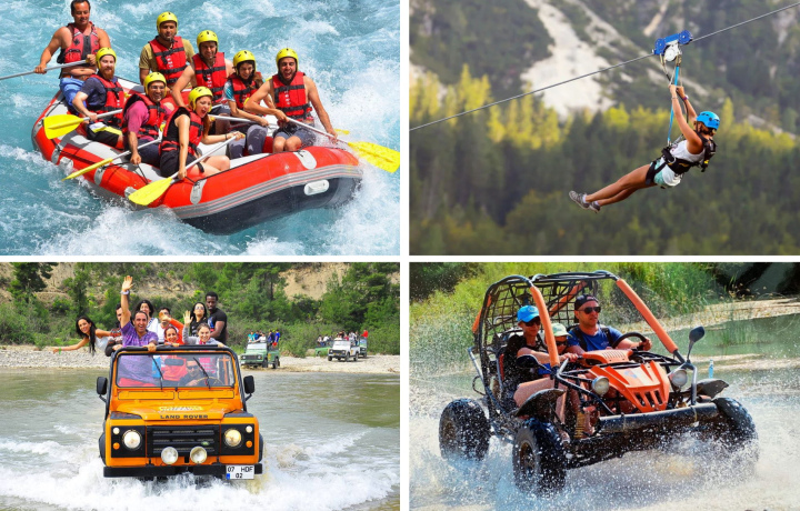 Прекрасное комбо для хороших эмоций! Сначала идут квадроциклы или багги по выбору — небольшое путешествие по пыли и речке. Потом рафтинг — вода холодная, солнце палящее, эмоции зашкаливают. Остановка на зиплайн — не страшно, минутное чувство полета. Потом продолжение сплава, в заключении джип тур по гористой местности и обед. Многое зависит от настроя и сопровождающего. В общем, если хотите поднять себе настроение среди отдыха «отель-пляж» — это прекрасный выбор.