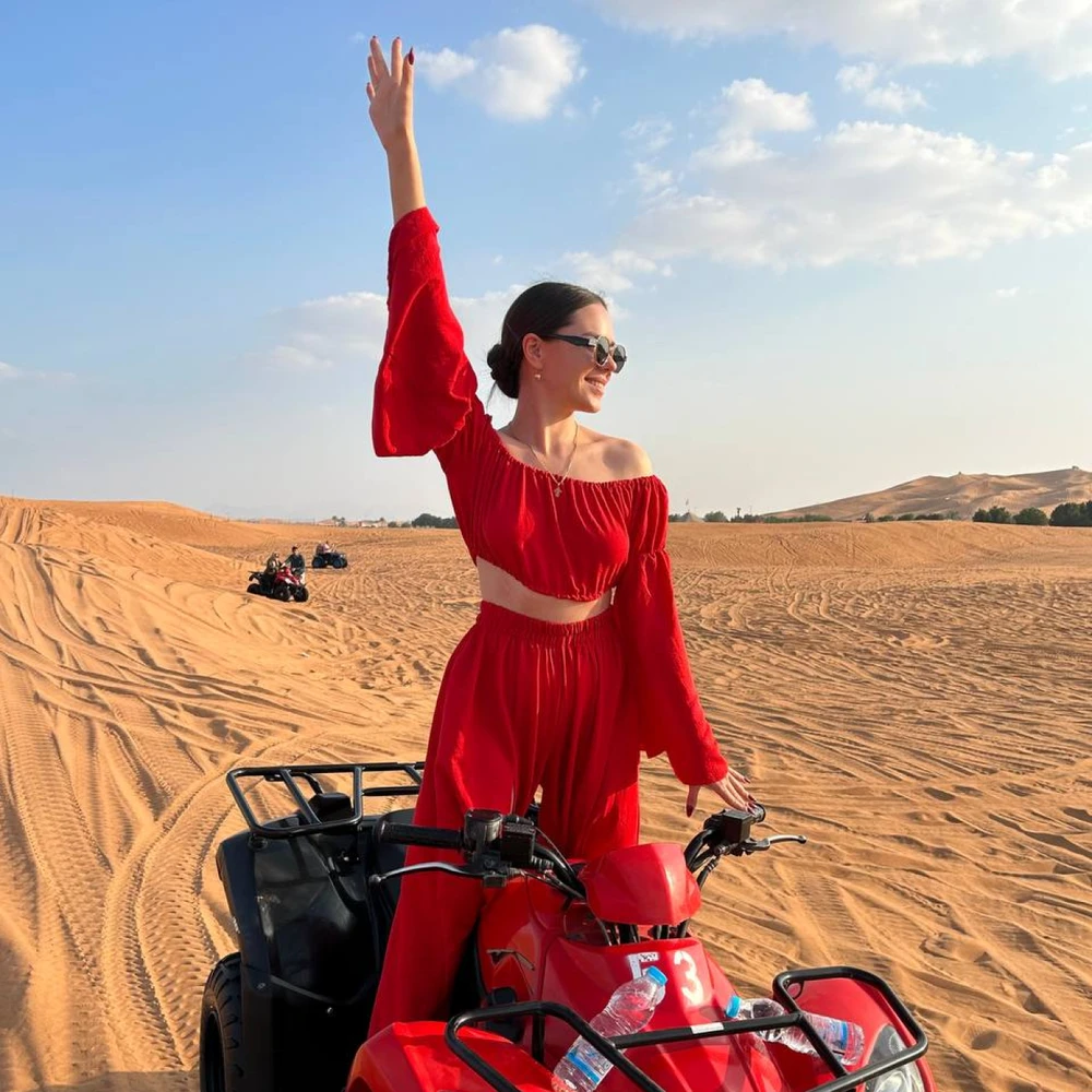 В пустыне вас ждёт катание на джипе по дюнам, короткая прогулка на верблюдах и возможность попробовать сэндбординг. Дополнительный экстрим в виде багги или квадроциклов можно добавить по желанию.