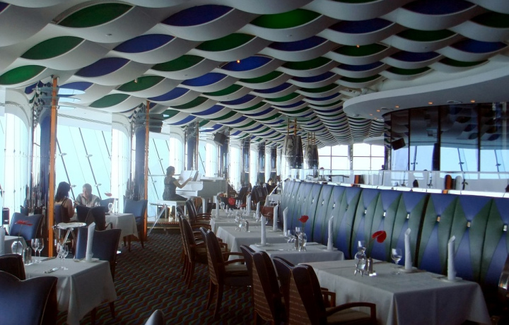 Для этого вам нужно забронировать столик в одном из ресторанов Бурдж-аль-Араба. На завтрак, обед или ужин, в одиночестве или уютной компании — на ваш выбор. Имея бронь, мы попадём внутрь отеля, осмотрим его роскошную обстановку и поднимемся на панорамную площадку, откуда вы полюбуетесь Дубаем. А после в полной мере насладитесь прекрасной авторской кухней.