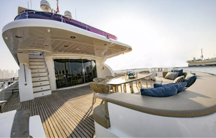 Бывали ли вы когда-нибудь на люксовой суперъяхте? 43 метра длиной, 5 спален, 3 палубы. Даже просто походить внутри и всё рассмотреть — невероятно интересно! Индивидуальная аренда такой яхты стоит от 11 тысяч долларов. Мы предлагаем уникальную возможность побывать на ней — позажигать на вечеринке или расслабиться в бассейне с видом на Дубай Марина.