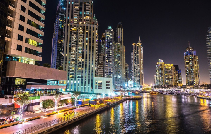 Рекомендуем выбирать вечернее время для прогулки, когда в городе не так жарко, а Дубай Марина в огнях иллюминации предстаёт в самом впечатляющем виде.
