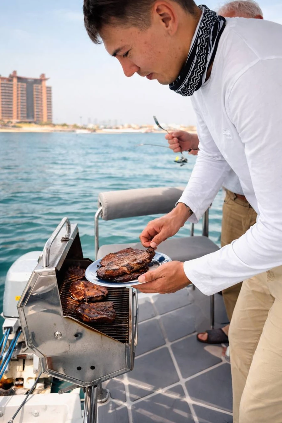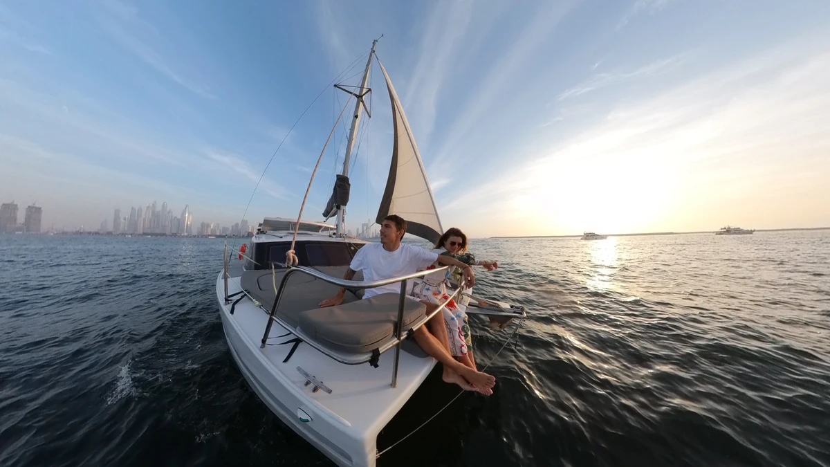 Мы пересечём акваторию острова Пальма Джумейра, пройдём вблизи небоскрёбов района Дубай Марина и JBR, острова Bluewaters и самого большого в мире колеса обозрения Ain Dubai. А после отправимся в открытое море, откуда откроется завораживающая панорама города.