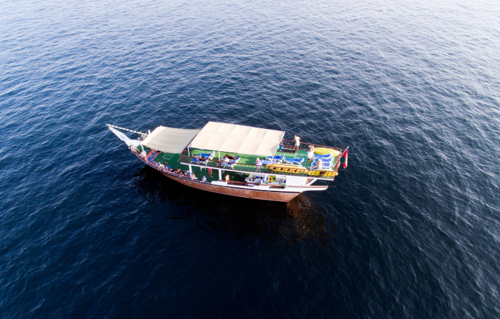 • Отсюда вы отправитесь на морскую прогулку в уютном судне Доу, традиционном корабле местных жителей. На нём вы попадёте на территорию султаната Оман, которому принадлежит полуостров Мусандам.