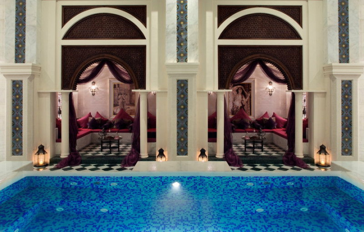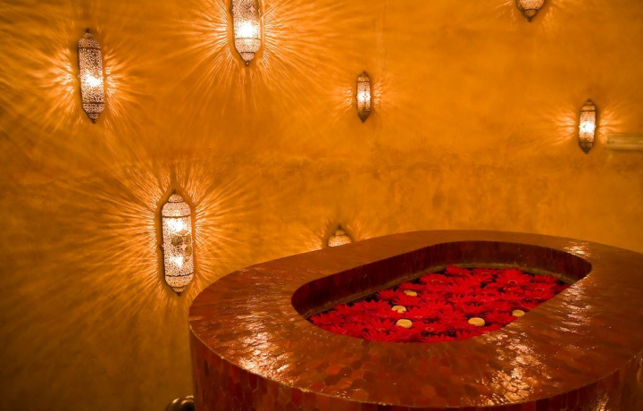 Марокканские бани — это одновременно и Дворец красоты, и название процедуры. В расслабленной обстановке, пропитанной ароматами благовоний, происходит очистка кожи с помощью сухого и влажного пара. Для проведения процедуры используют специальные составы, изготовленные по древним рецептам из Марокко. Воздух в помещении нагревается постепенно, чтобы вы не испытывали дискомфорт.