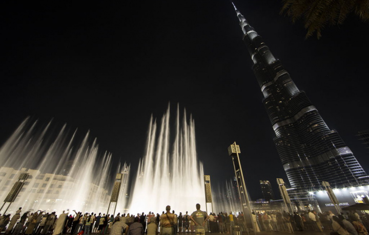 Во время прогулки вы увидите самую высокую башню в мире — Бурдж-Халифа. В ночных сумерках и подсветке её вид поражает и восхищает. Рядом проходит захватывающее шоу поющих и танцующих фонтанов — изумительное сочетание музыки, света и воды.