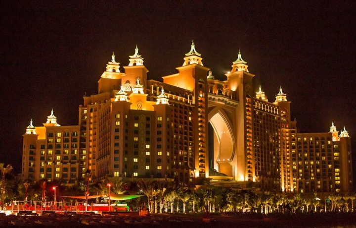 Впереди — традиционный торговый рынок Сук Аль Бахар, который выглядит как старинный дворец и построен прямо у воды. Здесь получаются великолепные фотографии, особенно на фоне роскошного отеля Бурж Аль Араб. Затем мы посетим рукотворный Пальмовый остров и оценим знаменитый пятизвёздочный отель Атлантис. Экскурсия завершится посещением отеля, где на 44 этаже находятся многие популярные бары. Отсюда, с огромной высоты, вы сможете насладиться потрясающим панорамным видом ночного Дубая.