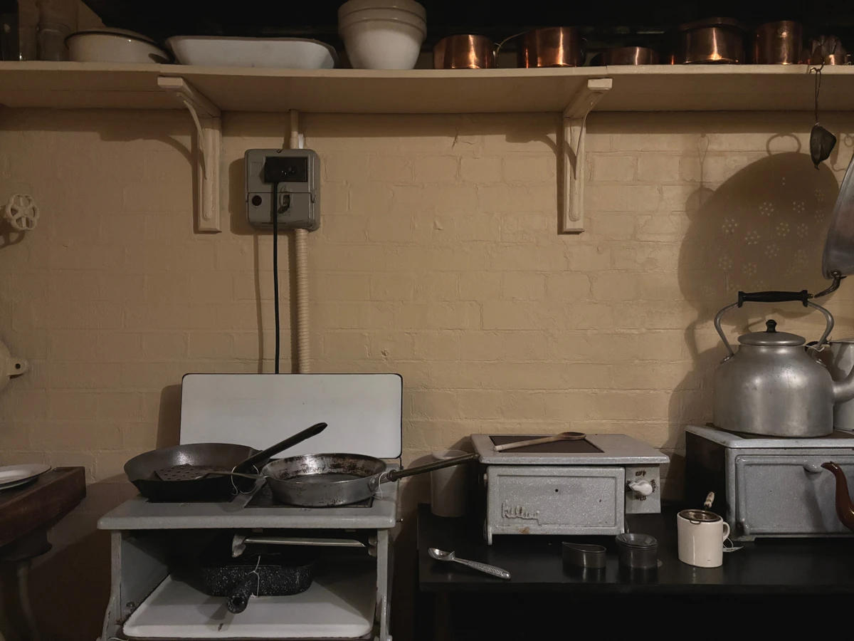 Спустившись по узкой лестнице в подвальное помещение секретного бомбоубежища, вы посетите центр командования и комнату карт, увидите спальню Черчилля и его столовую. Попутно мы поговорим о жизни простых людей, живших и работавших в подземном комплексе.