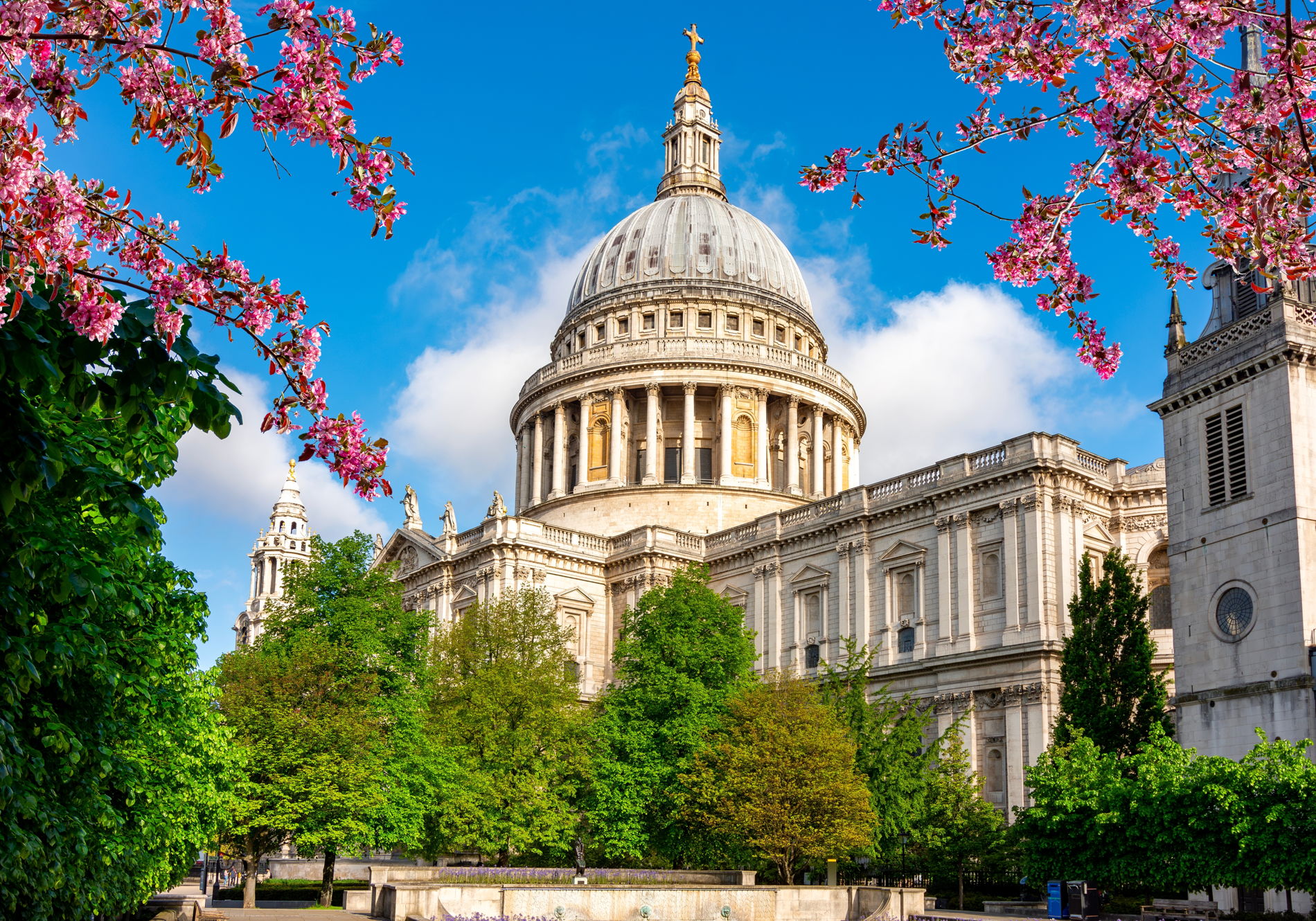 Собор наполнен естественным светом, мозаикой и картинами, украшающими купол. Осмотрите часовни, а затем поднимитесь по 257 ступеням в «Шепчущую галерею», далее — в «Каменную» и «Золотую галереи», откуда открывается потрясающий панорамный вид на город. Завершите визит в крипте, где находятся гробницы и памятники, в том числе лорду-адмиралу Нельсону и герцогу Веллингтону.