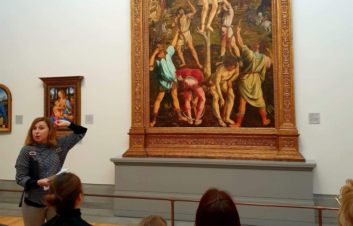 Мы начнём путешествие с проторенессанса — работ Чимабуэ, Джотто и Дуччо, которые заложили основы нового искусства. Проходя через залы, проследим за трансформацией художественных подходов. Полотна Мазаччо и Паоло Учелло покажут, как развивалось искусство Флоренции и появлялась линейная перспектива, а творение Яна ван Эйка — как совершенствовались масляные краски. Я расскажу о яркой жизни модели картины «Венера и Марс» и о художнике Боттичелли, который повторил в своей судьбе взлеты и падения родного города. Вы посетите залы с работами Рафаэля, Микеланджело и Тициана, творения которого порой были настолько откровенными для того времени, что их завешивали в присутствии дам.