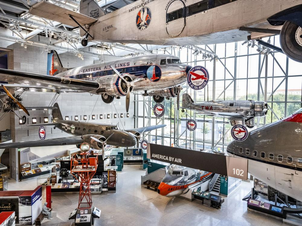 Национальный музей воздухоплавания и астронавтики (National Air and Space Museum) расположен на вашингтонской Национальной аллее. Здание представляет собой четыре каменных куба, которые соединяются между собой крытыми стеклянными галереями. В них выставлены самые крупные экспонаты — бомбардировщики, истребители, космические ракеты, луноходы. Музей Аэронавтики располагает крупнейшей в мире коллекцией исторических летательных аппаратов. При музее работает исследовательский центр, изучающий историю воздухоплавания, самолёто- и ракетостроения.