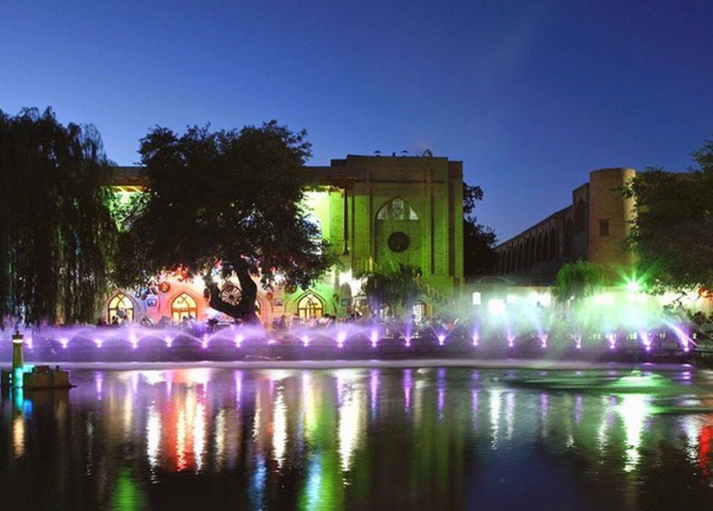 Маршрут проходит мимо главных достопримечательностей Бухары, подсвеченных в вечернее время. Вы увидите