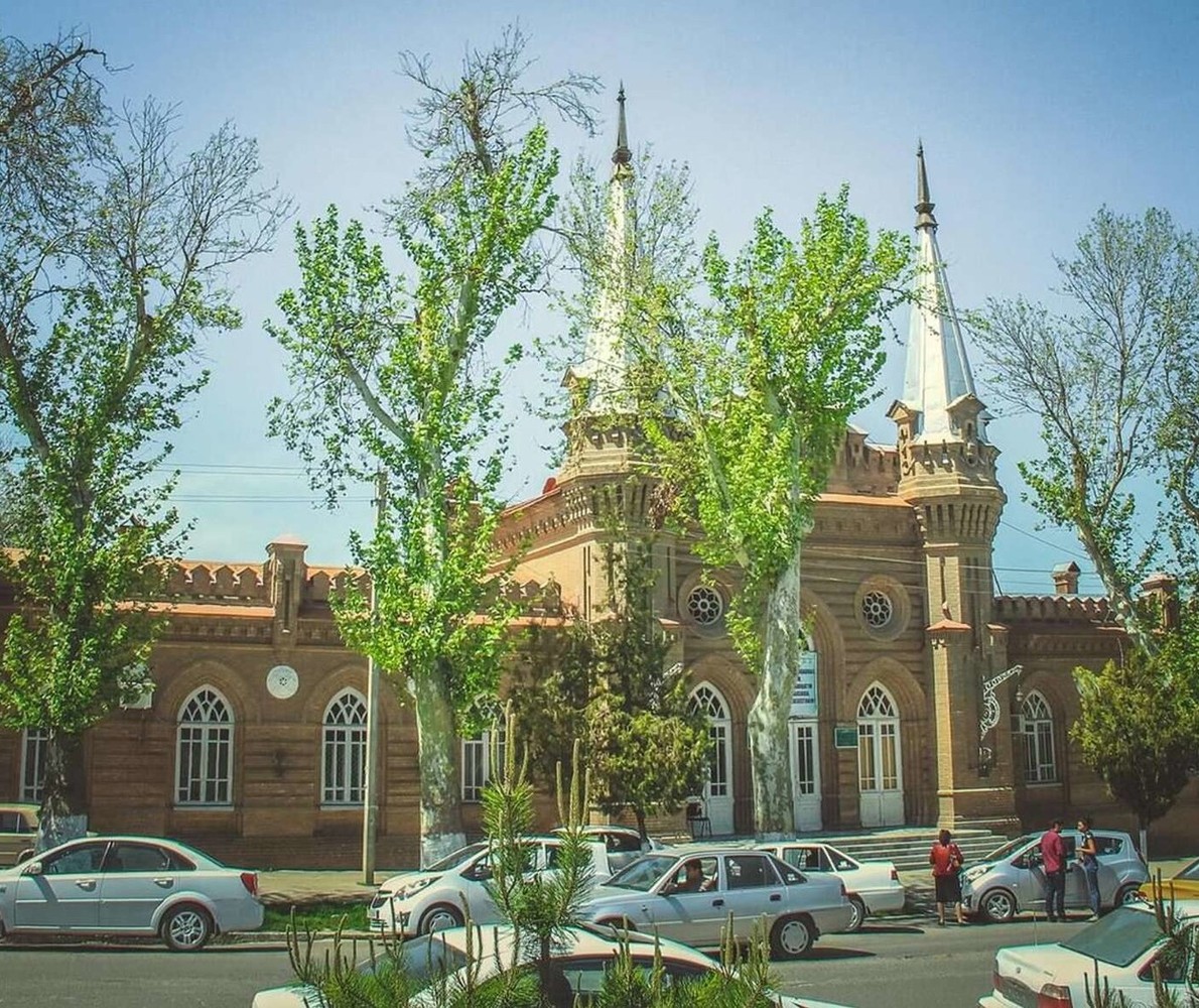 - Университетский бульвар — любимое у самаркандцев место для прогулок. Пройдём по аллеям и посмотрим на здание бывшего Русско-Китайского банка 1895 года постройки.