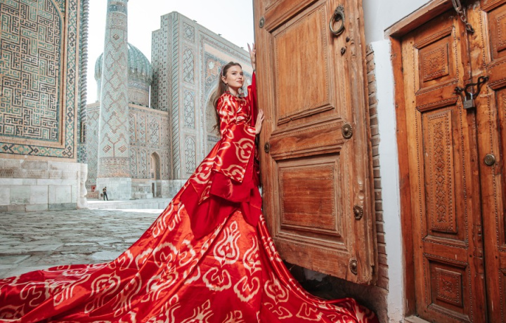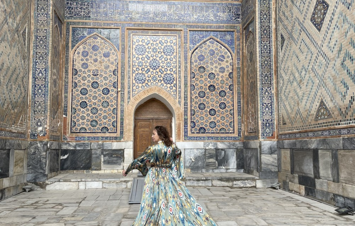 Идеальное время для прогулки-фотосесии — рассвет или закат, когда изразцы мерцают в ярко-багровых лучах солнца. В роскошных платьях с длинным шлейфом вы сфотографируетесь на iPhone 15 Pro в топовых локациях Самарканда и узнаете, как раньше назывался город, зачем женщины кружатся в мечети и что говорил об этих местах Македонский.