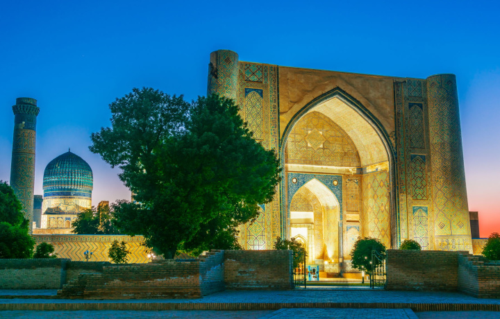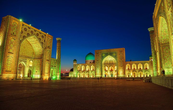 Вечерний тур по Самарканду на электросамокате — это возможность насладиться освещёнными достопримечательностями и прохладной вечерней атмосферой.