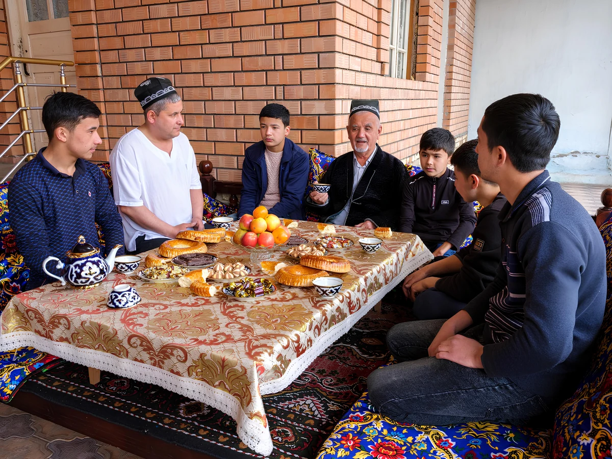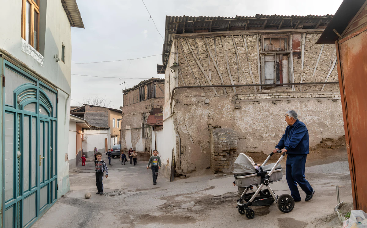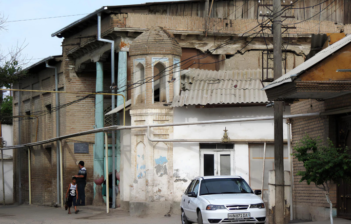 Зайдём в узкие улочки старинных кварталов — махалли, где глиняные стены соседствуют с советским кирпичом, резные деревянные двери выкрашены в голубой цвет, а двор скрыт от улицы.