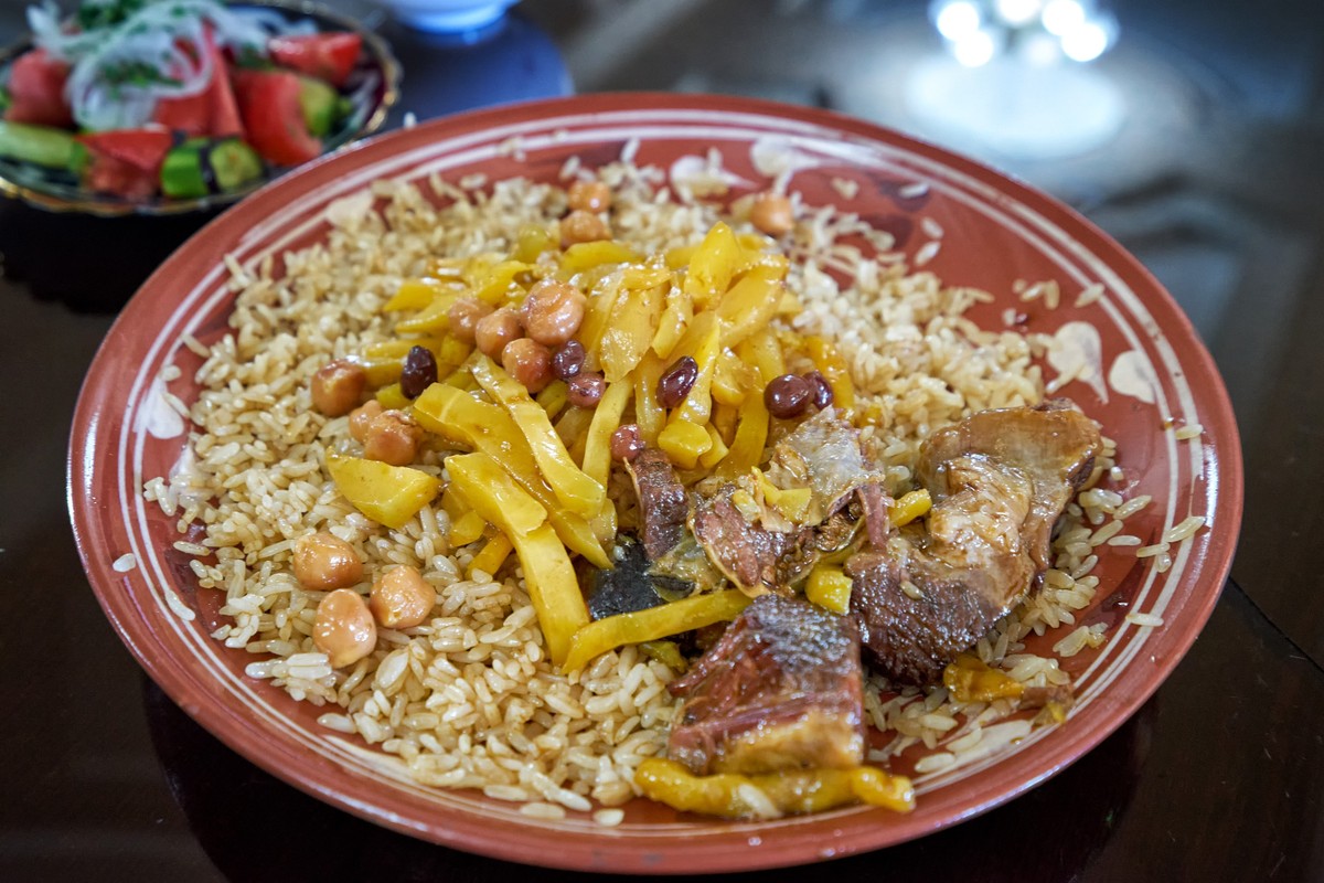 День начнется с посещения типичного самаркандского рынка, где мы вместе купим мясо, рис и специи для плова. Я расскажу о тонкостях выбора ингредиентов и помогу найти вкусные сувениры. Следом отправимся в пригород Самарканда, в кишлак (дачный поселок) Теракзор, где вас ждет в гости местная семья. Под руководством хозяина дома вы приготовите правильный узбекский плов, участвуя во всех этапах. После «работы», конечно, за стол! Помимо приготовленного плова вас ждут домашние гилминди — национальное лакомство из лаваша и крема.