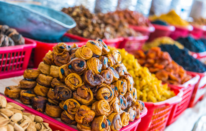 Приключение продолжится на старейшем в Средней Азии Сиабском базаре: я расскажу вам об узбекских традициях и обычаях, национальной кухне и костюмах, а вы сможете приобрести местные сувениры, попробовать традиционные восточные сладости, свежие фрукты и горячие лепёшки, пообедать настоящим пловом.