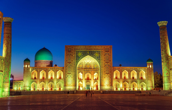 Вечерняя экскурсия по Самарканду позволит вам полюбоваться величественными сооружениями в завораживающей подстветке фонарей.