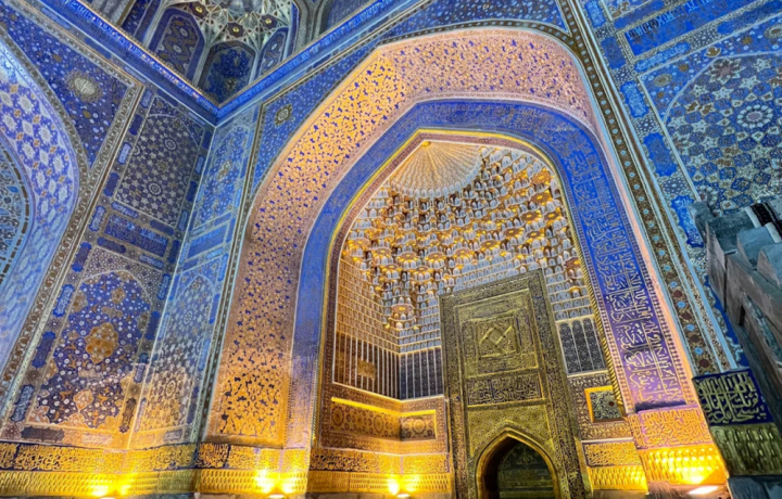 Посмотрели все основные достопримечательности Самарканда — понравилась гибкость в маршруте, гид ориентировался на наши интересы и вопросы, скорее это была приятная прогулка с жителем города, чем экскурсия в классическом формате, и это замечательно! Заметно, как трепетно гид относится к древней истории своего города и страны. Интересно было послушать о Тимуре и его жизни, посмотреть современное цифровое шоу на площади Регистан и оказаться в ночное время в некрополе Шахи-Зинда (мы были там одни в это время — в этом было особое очарование).