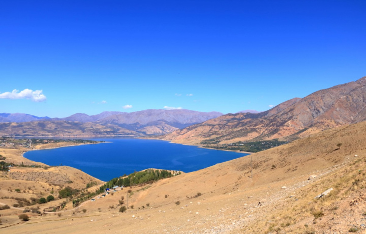 Мы прокатились на открытой канатной дороге, полюбовались на Чарвакское водохранилище и поселок Бричмулу, «где чинара притулилась под скалою».