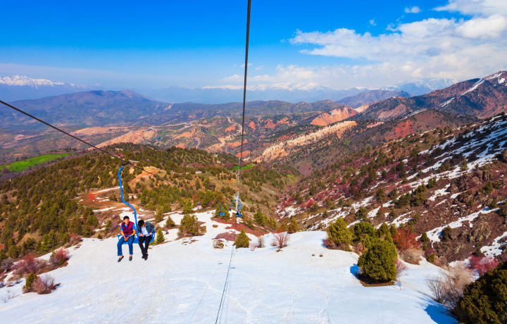 Горы Чимган приглашают подняться на кресельном подъемнике, который протянулся на 2 километра и поднимает гостей на высоту около 2000 метров, при благоприятных погодных условиях.