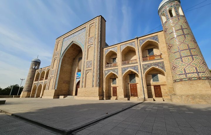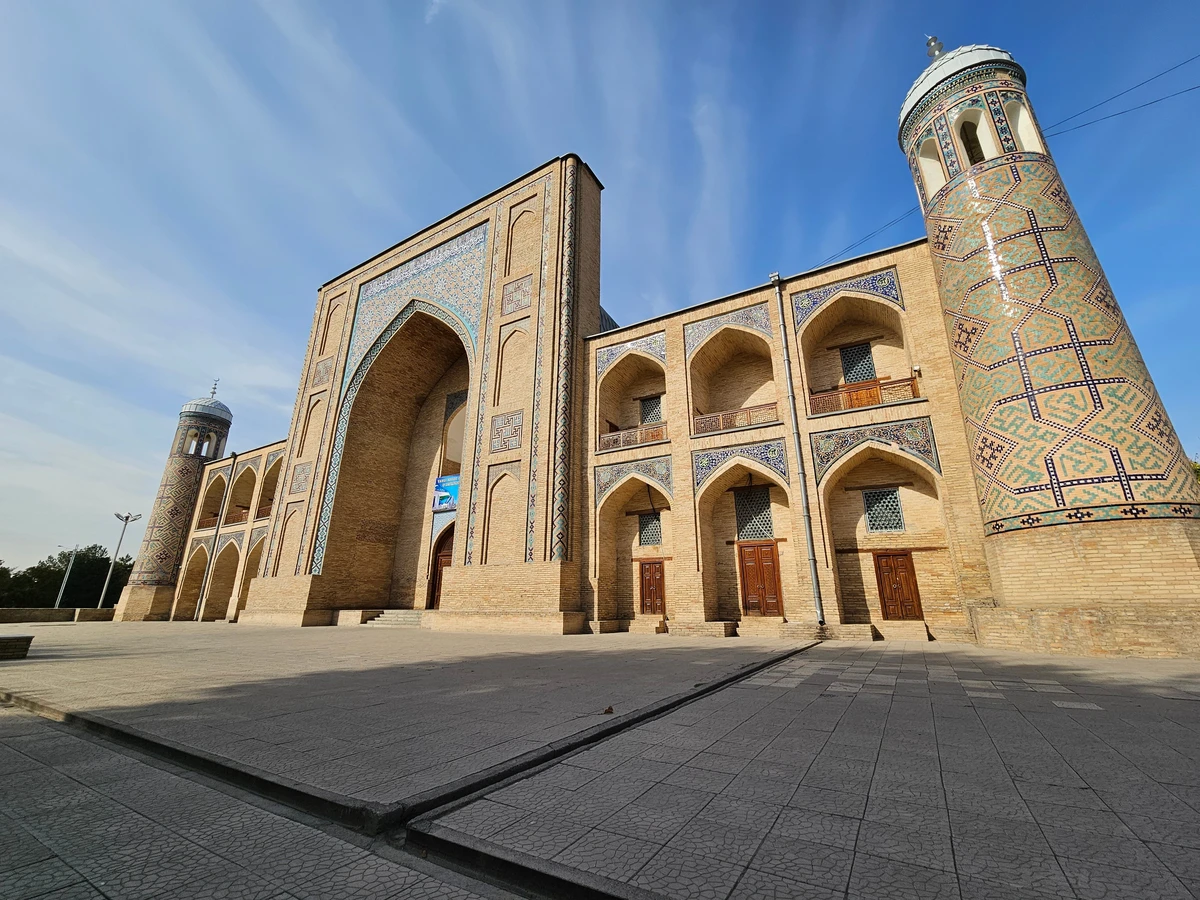 11:15–11:30 — медресе Кукельдаш. Крупнейшее из 23 медресе старого Ташкента, построенное в 16 веке, поражает облицовкой из небесно-голубой майолики, не уступающей по красоте самаркандским и бухарским шедеврам.