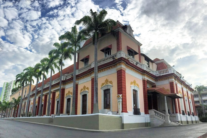 Дворец Мирафлорес строился в конце XIX столетия как роскошная частная резиденция. Владелец Хоакин Креспо не скупился на отделку, которую выполняли лучшие мастера того времени — резчики, скульпторы, декораторы. Особняк с внутренним двориком выдержан в европейском стиле, мебель и детали внутреннего убранства были изготовлены в Испании.