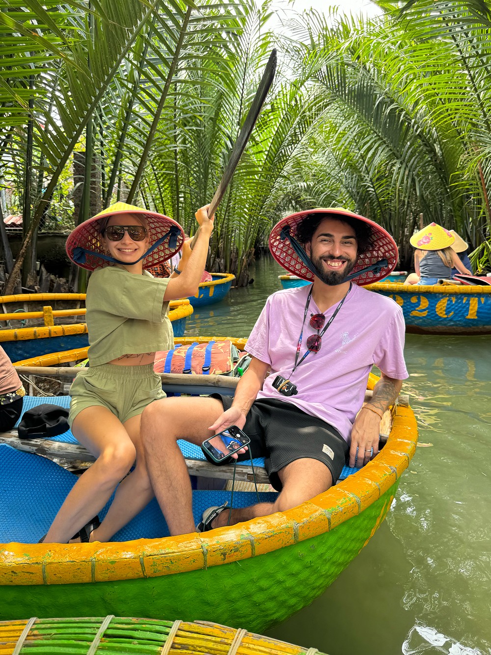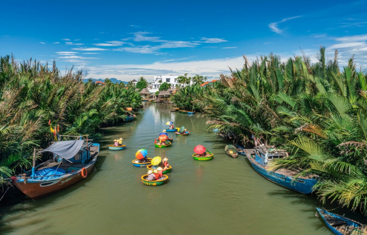 Прогулка на круглых лодочках в Кокосовой деревне. Вас ждёт 50-минутная прогулка на круглых бамбуковых лодках. Вы полюбуетесь местными пейзажами и понаблюдаете за буднями рыбаков.