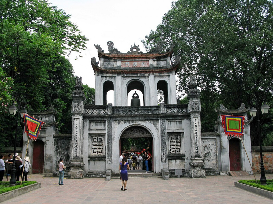 Храм Конфуция построен в XI веке во время правления императора Ли Тхань Тонга. Через несколько лет в нём открылся первый национальный университет для обучения сыновей императорских чиновников. Храм литературы занимает 55 000 кв. м, он состоит из пяти внутренних дворов и множества построек. За двухъярусными белыми воротами расположены первые два дворика с парками. В конце второго на высоких столбах стоит Литературный павильон с колоколом. Пройдя под ним, вы окажетесь в третьем дворе. Здесь вокруг пруда на спинах каменных черепах возвышаются 82 стелы с именами слушателей университета, получивших докторскую степень. Самая старая относится к второй половине XV века. Тут же в двух павильонах хранятся храмовые реликвии.