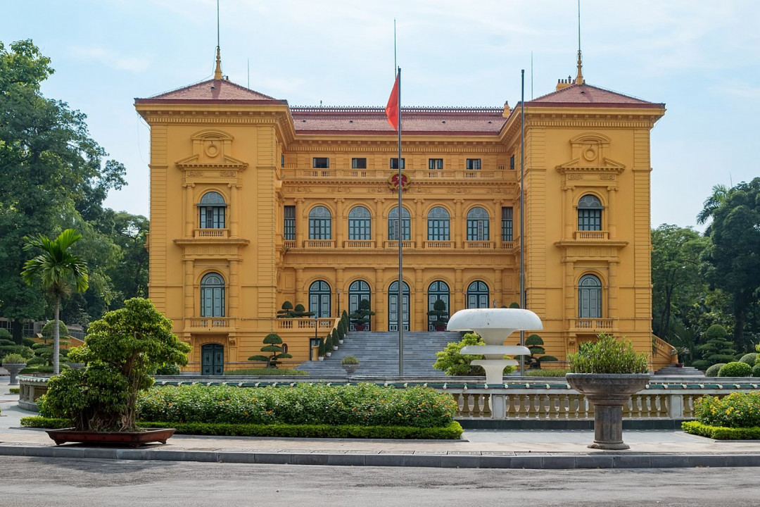 Президентский дворец — красивое здание в стиле неоренессанса рядом с площадью Ба Динь, построенное в 1906 году как резиденция генерал-губернатора французского Индокитая. Во время правления Хо Ши Мина дворец пустовал — вождь был очень скромным человеком и большим апартаментам предпочитал скромный домик в саду. Сегодня дворец является официальной резиденцией президента Вьетнама. Внутрь туристов не пускают, но можно прогуляться по чудесному парку и заглянуть в тот самый домик Хо Ши Мина, где сейчас открыт музей.