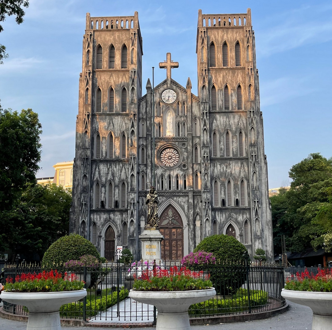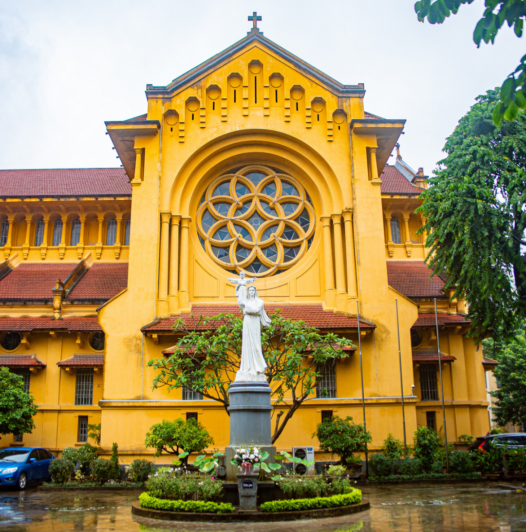 Кафедральный собор Святого Иосифа построили французы в 1887 году. Он расположен в Старом квартале на площади рядом с озером Хоан Кьем. Католический храм в неоготическом стиле напоминает Собор Парижской Богоматери. По бокам стрельчатой арки центрального входа возвышаются квадратные башни, фронтон венчает крест, под ним находятся часы. Кирпичное здание облицовано гранитными плитами.