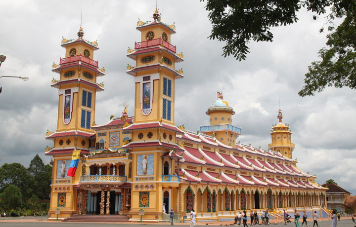 • После горного величия мы спустимся в «Святой Престол» религии Каодай. Представьте себе храм, где готические башни соседствуют с восточными драконами, а внутри — яркий мир, где почитают Будду, Конфуция, Иисуса и даже Виктора Гюго. Это яркое, сюрреалистичное зрелище, которое невозможно встретить больше нигде в мире.