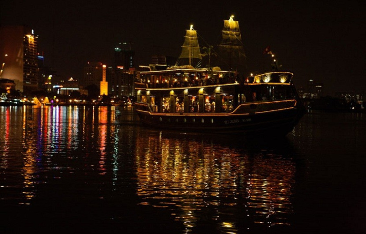 Так получилось, что с гидом, которого по русски называют Виктор мы познакомились ещё утром на обзорной по городу, он много нам рассказал об истории возникновения Сайгона, основных достопримечательностях, а также стойкости и независимости вьетнамского народа в борьбе с французами и американцам. Вечером он заехал за нами, чтобы посмотреть Хошимин вечерний с воды. Название полностью оправдывает этот тур - был шикарный шведский стол на корабле, шоу в национальном стиле и потом дискотека. Можно ходить по кораблю и любоваться видами ночного Сайгона с палубы. По ходу круиза он также рядом и может ответить на все вопросы.