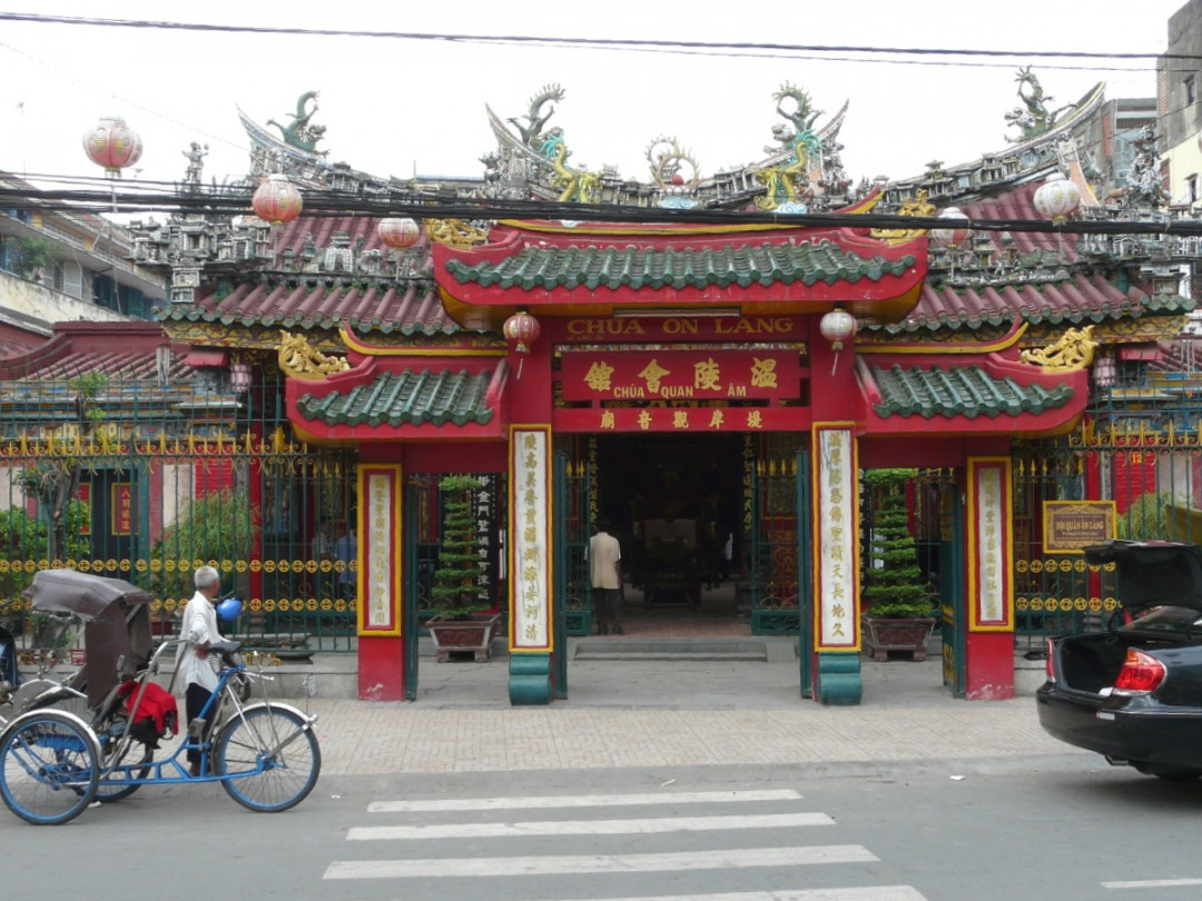 В 1816 году китайские торговцы построили в Хошимине пагоду Куан Ам, посвящённую богине милосердия Гуань Инь (по-вьетнамски — Куан Ам). Её почитают во всей Юго-Восточной Азии и называют азиатской Девой Марией. По китайскому верованию, богиня сострадает человечеству и помогает в любых просьбах, если они не вредят людям. Храмовый комплекс расположен по обеим сторонам улицы. На южной стороне находится красиво оформленный пруд с рыбками, барельеф с изображением Нефритового императора, искусственный остров, на котором стоит фигура богини. Напротив расположен сам храм Онг Ланг, богато украшенный деревянной резьбой. В главном святилище установлены две вращающиеся колонны, к которым прихожане прикрепляют именные таблички с пожеланиями. Внутреннее убранство пагоды изобилует изображениями драконов, Будды, богини Куан Ам, рельефной резьбой на религиозную тему.