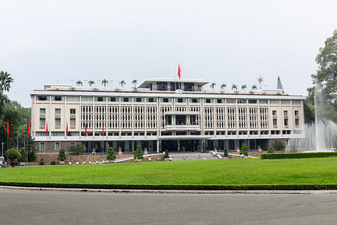 Дворец Независимости, построенный в 1966 по проекту архитектора Нго Вьет Тху, символизирует для всех жителей Вьетнама конец войны и воссоединение Северного и Южного Вьетнама. Именно в этом здании был подписан мирный договор между регионами страны. Автор проекта спланировал здание в форме китайского иероглифа, имеющего значение «хорошее будущее». В здании переплетены европейские черты и восточные мотивы, характерные для вьетнамской архитектуры 60-х годов прошлого столетия. Интерьеры украшены картинами и предметами декоративно-прикладного искусства, выполненными современными вьетнамскими мастерами. Дворец окружает просторный парк с небольшим искусственным прудом, газонами, беседками, декоративными растениями в горшках.